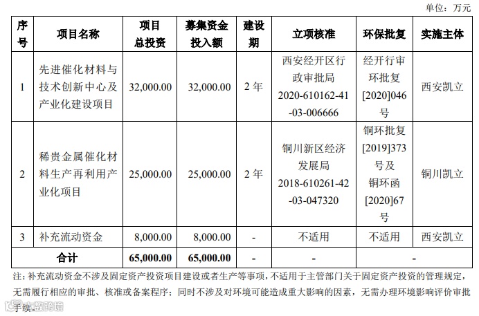 此次IPO拟募资6.5亿元,用于先进催化材料与技术创新中心及产业化建设项目、稀贵金属催化材料生产再利用产业化项目和补充流动资金项目。