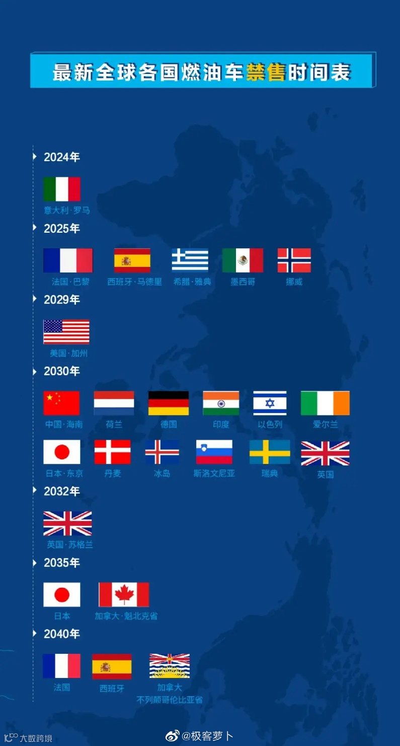 不过,奥迪如此快速而坚定的表态,也于欧洲国家对环保的诉求有关。截至目前,已经有多个国家相继宣布,在2025-2030年间停售燃油车,比如英国决定在2030年禁售燃油车,