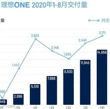 9月2日,理想汽车公布了8月交付数据。数据显示,理想ONE在8月交付2,711辆,环比增长10.88%,创单月交付量新高,至此理想ONE在今年前八个月中总计交付14,656辆。