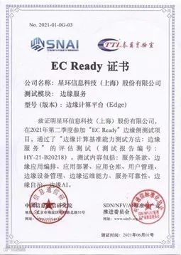 )股份有限公司(以下简称: 星环科技)参加了“EC Ready” 测试评估,并顺利通过了“EC Ready”边缘服务测试。