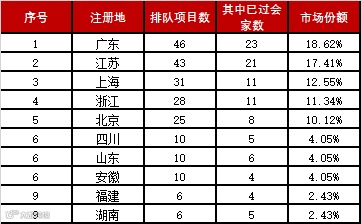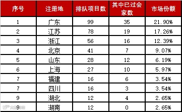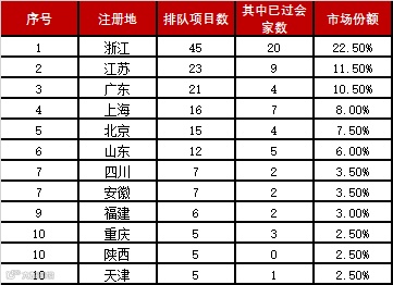 主板中小板IPO排队项目省区排名TOP10