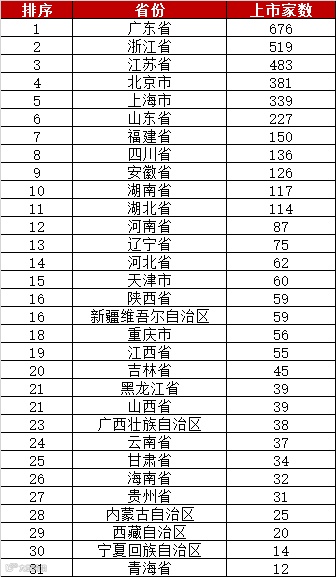 (含科创板216家),深交所共有2350家(含创业板895家),以下为A股4147家已上市公司城市、省区分布情况:
