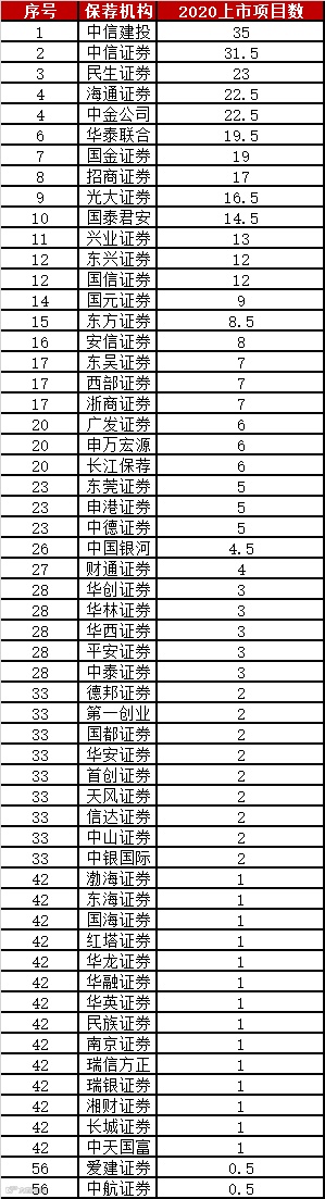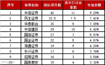排队项目保荐机构排行榜