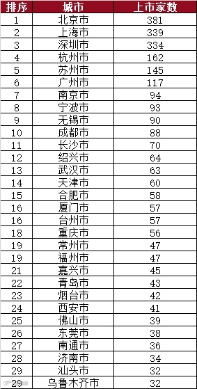 A股已上市公司城市、省区排行