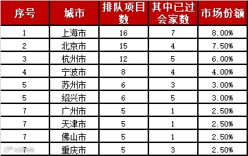排队项目城市排行榜