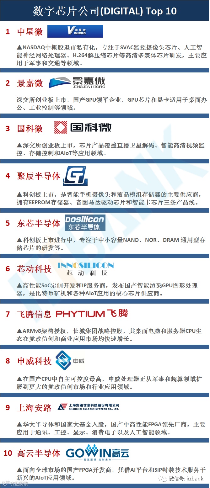 紫光展锐(中国最大的泛芯片设计企业);集创北方(国内显示芯片龙头企业);京微齐力(北京唯一一家FPGA芯片企业);