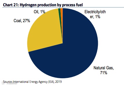 目前氢气开发还不是一个绿色工业——目前99%的氢气是由化石燃料制造的,比整个航空业的排放量还要多,而氢气发电的效率只有16%。美银美林表示,