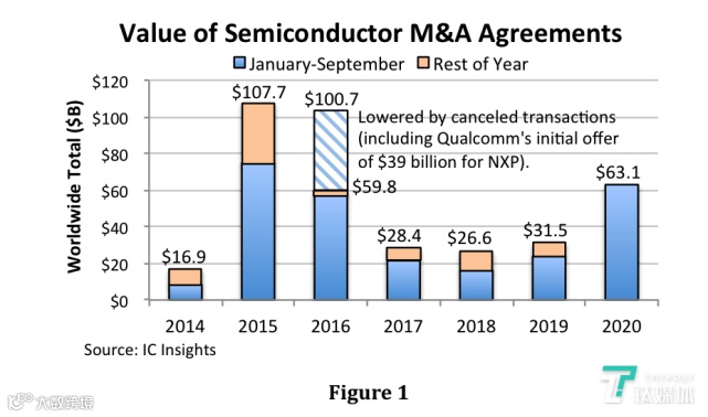 IC Insights最新发布的2020 McClean半导体产业并购报告