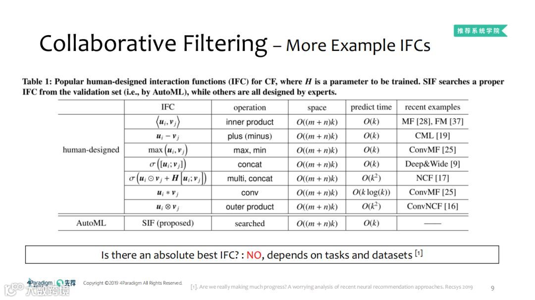 是否存在绝对最优的IFC?答案是否定的。因为协同过滤中,任务与数据集具有多样性。真正想要回答这个问题,就要知道why以及我们为什么要采用这种方式设计。