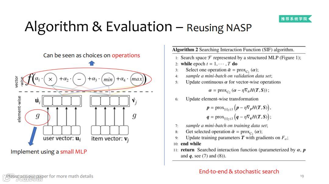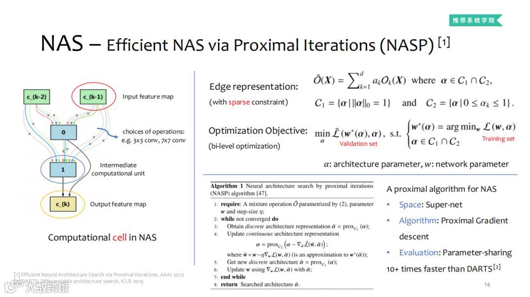 NASP算法逻辑如上图,对于向量层面可以理解为简单的线性代数运算,同时元素映射可以理解为非线性转换,这使得算法可以训练端对端和随机搜索,相比以往我们引入通过限制运算的离散选择,可以极大的改善效率问题同时极大程度上提高效果,有兴趣的朋友可以看看我们的论文。