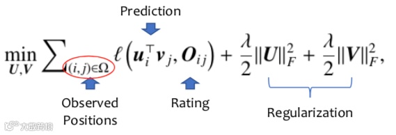 矩阵U的每一行可以看作user embedding向量 ,矩阵V的每一列可以看作item embedding向量;