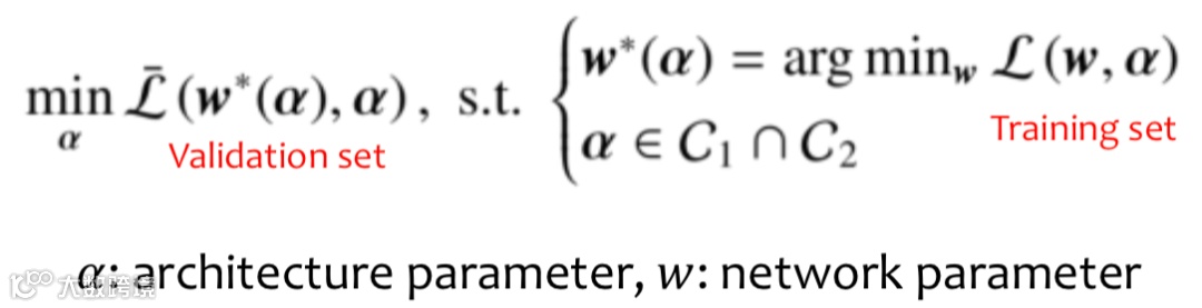 在super-net进行搜索:对于单个cell而言,有两个输入节点,1个输出节点,中间就涉及到网络如何设计,0、1 表示中间节点,边上代表选择,如3*3卷积,7*7卷积等。
