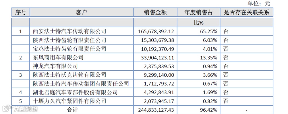 截至2019年报,公司前五大客户占比达到96.42%,知名客户如法士特、东风商用车等。而作为占中型、重型卡车变速箱85%以上份额的法士特公司,2020年重型变速箱的总计划量安排110万台以上,而法士特公司是公司的最大客户,订单及产品产量或将会有较大幅度的提升。