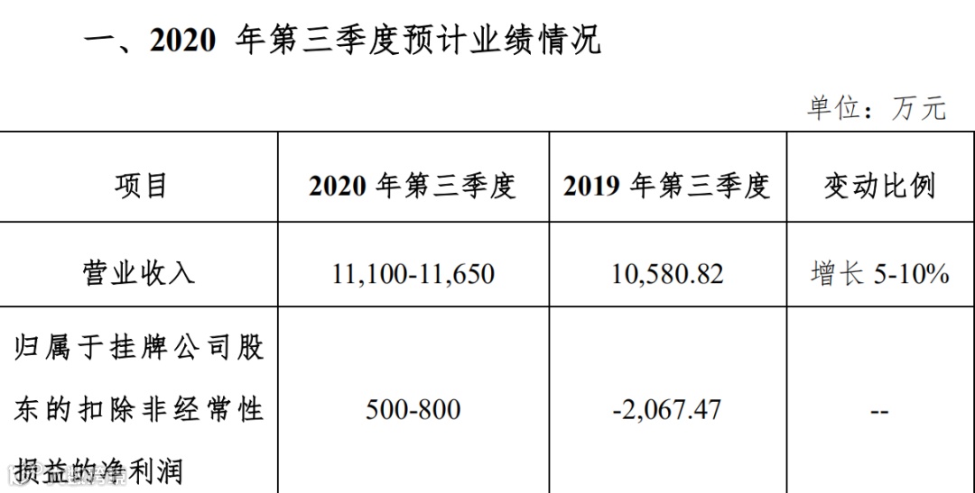 按规定,股转公司对各个层级的季报披露要求不一样,其中精选层必须披露季度报告,创新层和基础层则是自愿披露。三季报披露时间为每年的10月份,在2020年10月30日前会披露完成。