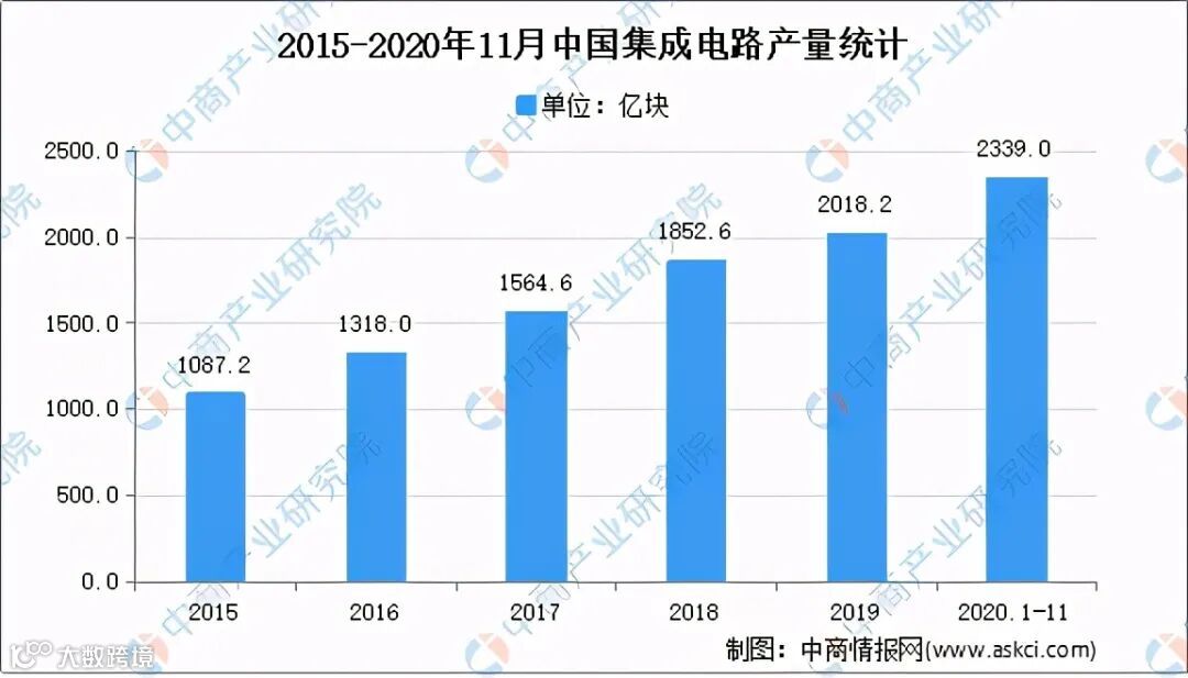 近年来,我国芯片技术不断提升,集成电路产业快速发展。芯片是指封装后的集成电路,是信息产业的核心之一。2020年我国集成电路维持增长趋势,产量较2019年有所增长。数据显示,2020年1-11月我国集成电路产量达2339亿块,同比增长15.9%。