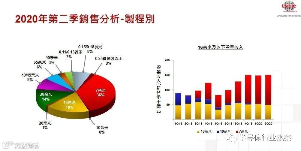 从近期台积电的财报来看,7nm工艺才是其近两个季度的主要营收来源,分别贡献了营收的35%和36%。