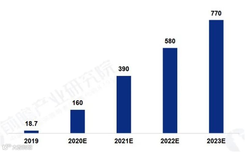 ▲2019-2020年中国5G芯片规模测算(单位:亿美元)