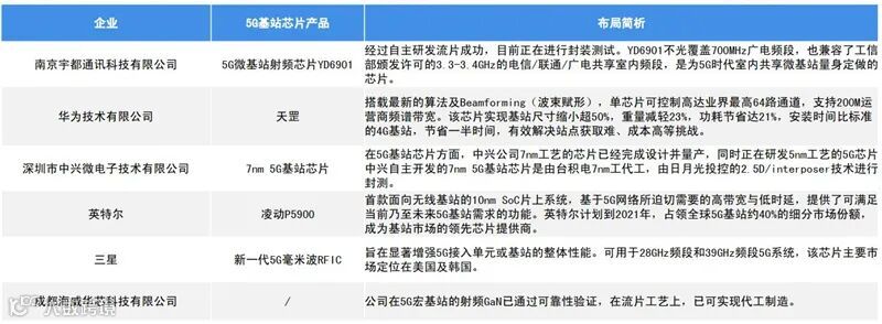 ▲5G基站芯片领先企业布局情况汇总