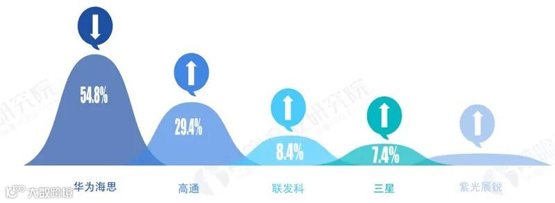 ▲5G芯片市场份额发展趋势