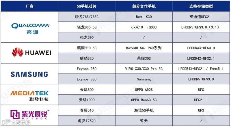 最开始推出第一个5G基带芯片的是老牌巨头高通。高通在2016年10月,就发布了X50 5G基带芯片。彼时,全球5G标准都还没制定好。2019年9月,华为推出全球首款5G SoC麒麟990。紧接着,在2019年年底高通发布会上推出两款5G芯片,外挂式骁龙865和集成式骁龙765G,与小米紧密合作。vivo X30/X30 Pro 5G与三星牵手搭载Exynos 980 5G芯片,OPPO Reno 3 5G与联发科牵手搭载天玑1000 5G芯片。紫光展锐春藤510和虎贲T7520也来势汹汹。随着各大5G芯片厂商相继推出旗下最新的5G手机SoC芯片和5G基带芯片,5G芯片的战火愈燃愈烈。