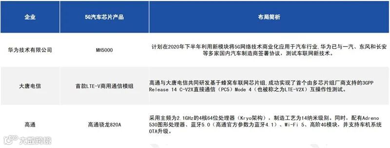 ▲5G汽车芯片领先企业布局情况汇总
