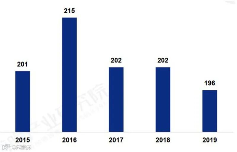 ▲2014-2019年全球基带市场收益规模(单位:亿美元)