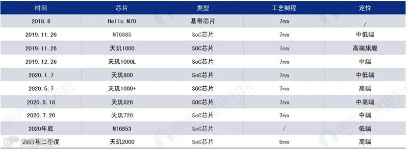 ▲联发科5G芯片产品