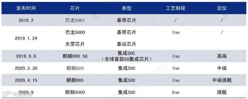 ▲华为5G芯片产品