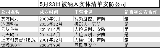 同样的这些企业也有一个共性,就是主营业务都是安防,并且都或多或少和公安合作。如果把这些企业再列个表,我们会对这次的实体清单有更深入的了解。