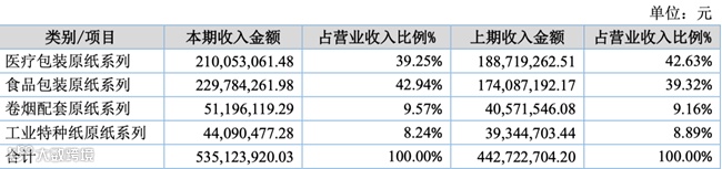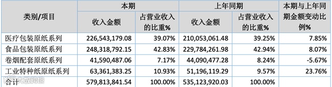 公司的主要产品按照用途不同可以分为医疗包装系列原纸、食品包装系列原纸、卷烟配套系列原纸、工业技术配套系列原纸。