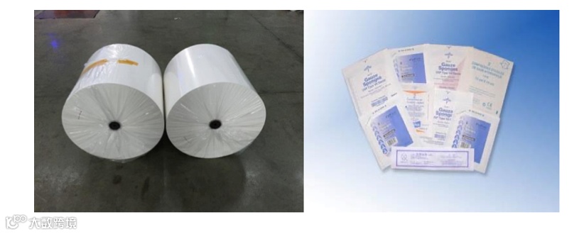 医疗包装系列原纸:采用全原生木浆生产,制定了合理的长短纤维工艺配比,经特定的打浆工艺处理,并添加特殊的化工助剂,再通过先进的造纸机械设备抄造成形,各项工艺技术参数控制稳定。本产品主要用于包装纱布块、导管、灭菌包、各种敷贴以及其他一次性医疗产品,有良好的阻菌性、透气性和较好的表面张力强度,适合各种不同灭菌方式要求。