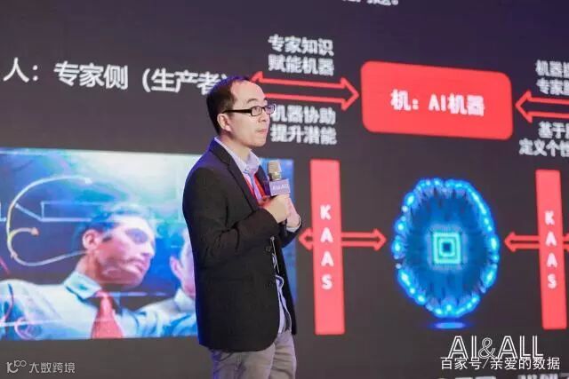 于两侧。一方面是专家侧,一方面是用户侧,也就是一面是生产者,一面是消费者。我们每个人可能同时是专家也是用户。中间的机器的任务作为服务的环节,让专家更专业,让消费者的用户体验更好,效率更高。