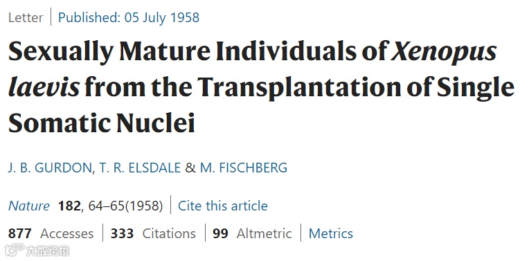 题目:Sexually Mature Individuals of Xenopuslaevis from the Transplantation of Single Somatic Nuclei