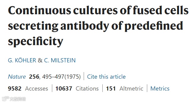 1975年,Nature报道了如何制造能产生已知特异性抗体的细胞系。这一发现导致了在治疗自身免疫疾病和癌症方面的重要生物学发现和临床上的成功进展。