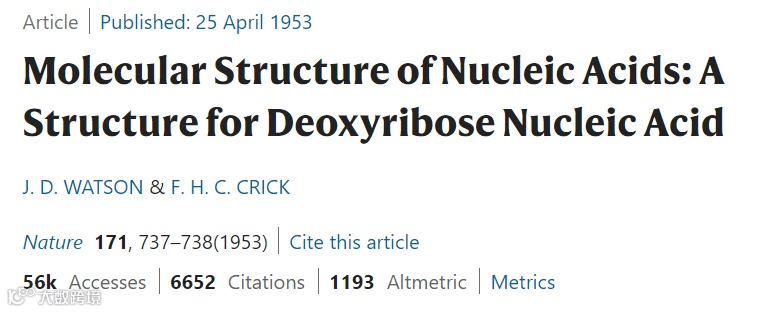 题目:Molecular Structure of Nucleic Acids: AStructure for Deoxyribose Nucleic Acid