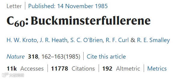 作者:H. W. Kroto, J. R. Heath, S. C. O'Brien,R. F. Curl & R. E. Smalley