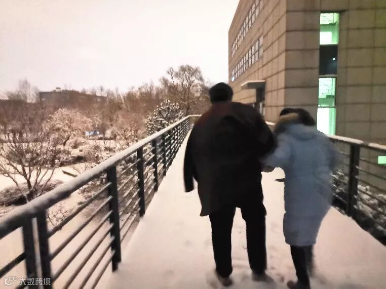 凌晨一点多下雪的夜晚,同事搀扶着怀孕初期的马银平博士去宿舍休息