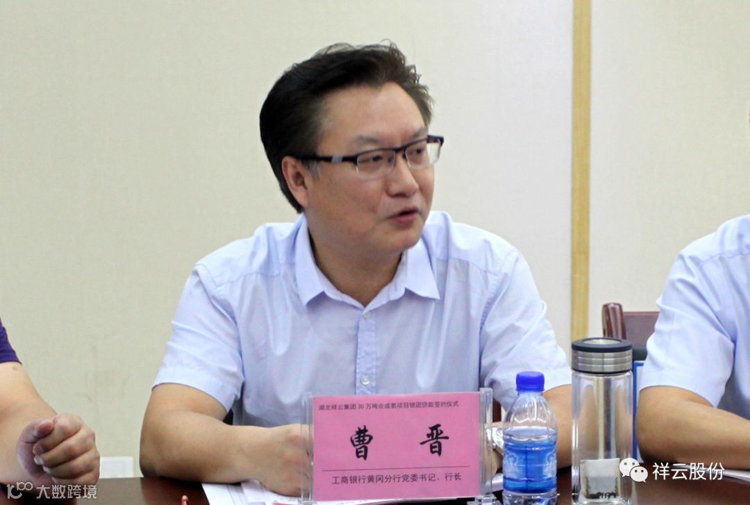 银团牵头行---中国工商银行黄冈分行党委书记、行长曹晋,代表银团作发言。他指出,祥云股份是武穴市艰苦创业、不断革新的先进典型代表,更是黄冈市制造业的骄傲。祥云股份年产30万吨合成氨项目,不仅是湖北省重点项目,也是黄冈市“双百”项目,更是实现“百年伟业,千亿祥云”的新动能、新引擎。这次对祥云股份贷款签约10.5亿元,是黄冈历史上第一次、第一笔超过十亿元支持制造业。同时,也是银行兄弟联支持武穴发展、高质量发展的信心和决心。武穴是一块宝地,祥云是一座金矿,我们为此庆幸和感谢走上了这个新时代。今天的签约,只是开始新征程的第一步,后面还有可能会碰到一些困难和挑战,我们一起来关爱祥云、呵护祥云、帮助祥云、支持祥云,让企业蒸蒸日上,让我们群众幸福开心,让我们政府放心满意,让武穴这块土地永远充满阳光和生机。