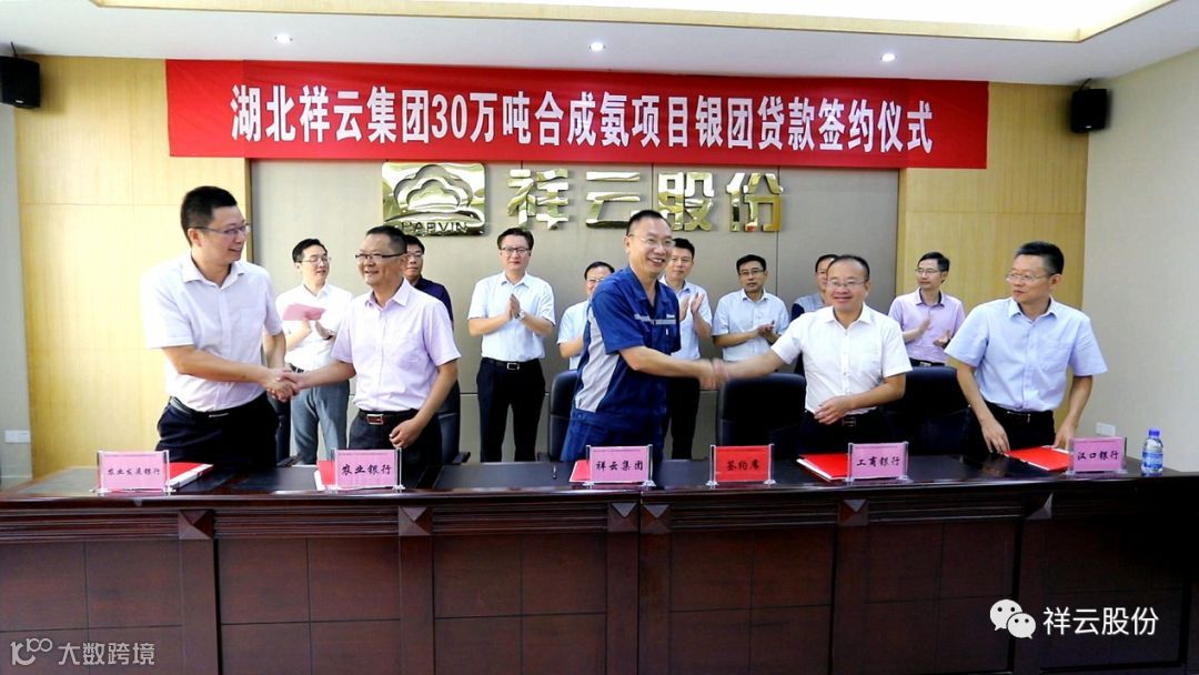 8月15日,祥云股份30万吨合成氨项目银团贷款签约仪式在祥云举行。中国工商银行黄冈分行、中国农业银行黄冈分行、中国农业发展银行武穴支行、汉口银行黄冈分行主要领导,武穴市委常委、常务副市长高维鹏,武穴市金融工作局、市人民银行、银监局市监管办相关负责人,以及祥云股份领导胡华文、廖起成,财务负责人陈慧春,共计20余人参加仪式。