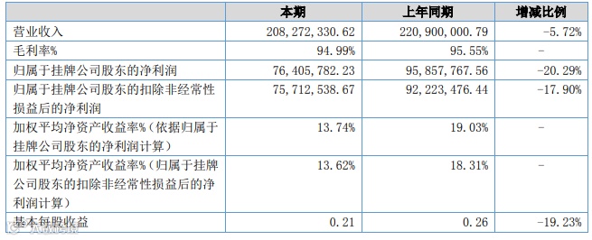 显示,麟龙股份2018年实现营业收入2.08亿元,同比下降5.72%;归属于挂牌公司股东的净利润为7640.58万元,同比下降20.29%。