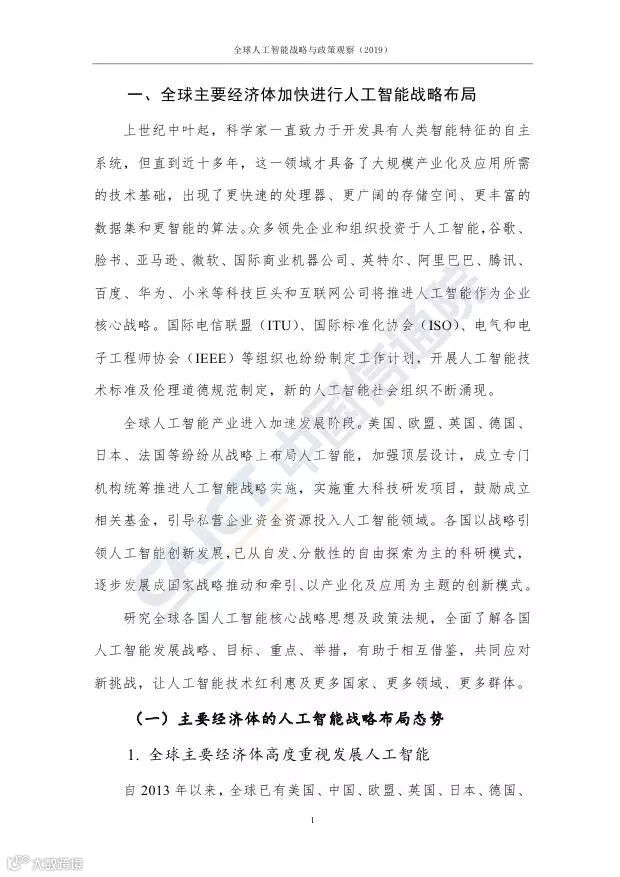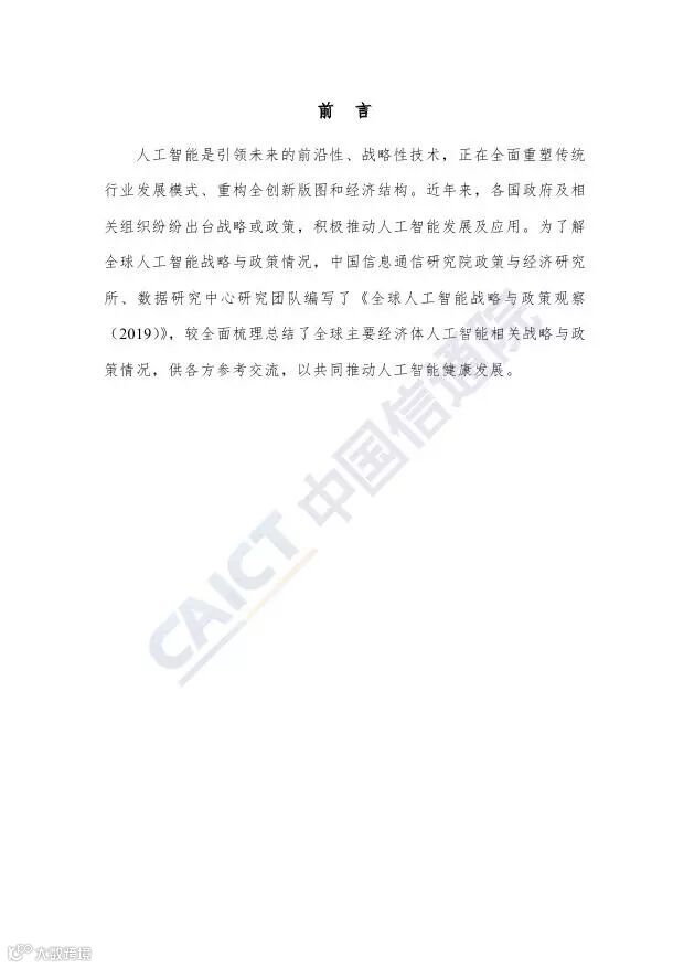 人工智能是引领未来的前沿性、战略性技术,正在全面重塑传统行业发展模式、重构全创新版图和经济结构。近年来,各国政府及相关组织纷纷出台战略或政策,积极推动人工智能发展及应用。