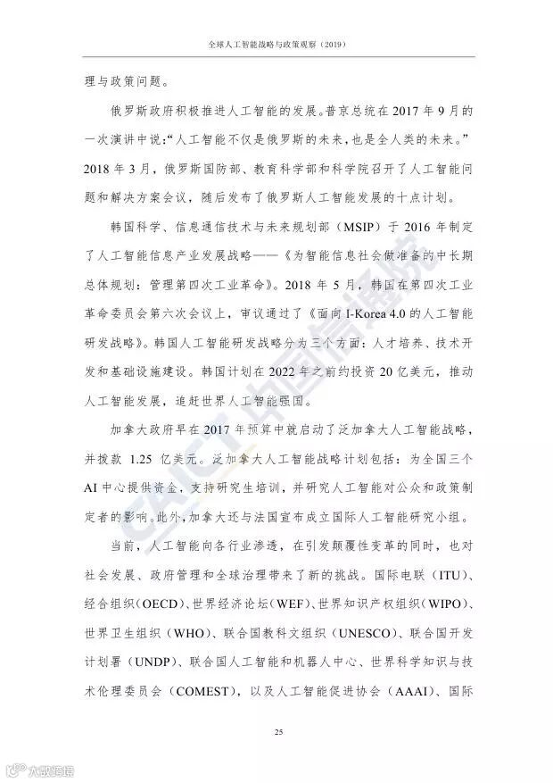 导读:近年来,各国政府及相关组织纷纷出台战略或政策,积极推动人工智能发展及应用。