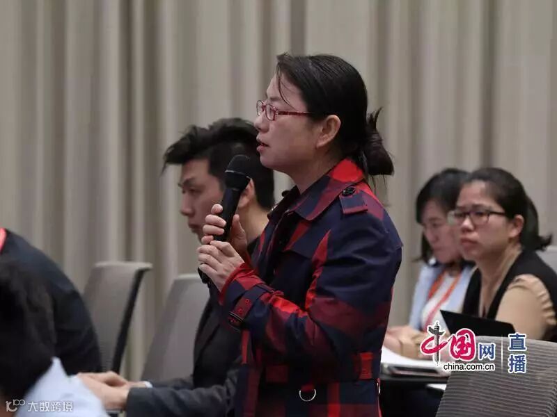 本报记者吴佳佳在吹风会上提问。来源:中国网。