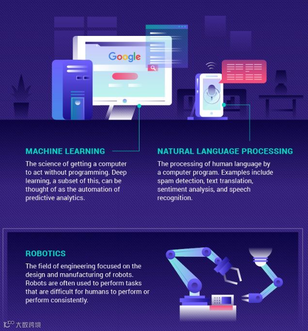 机器学习:让计算机在未经编程的情况下运行。机器学习的子领域之一是深度学习,其目标是实现自动化的预测性分析。