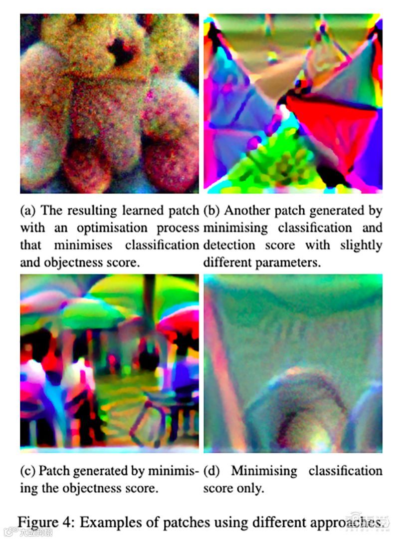 研究人员写道:“我们通过优化图像来实现这一目标,以最大限度地减少与探测器输出中人物外观相关的不同概率。在我们的实验中,我们比较了不同的方法,发现最小化对象丢失创造了最有效的补丁。”