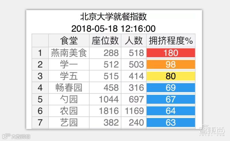 ▲北大“食堂神器”可以实时监测各大食堂的就餐人数及拥挤程度