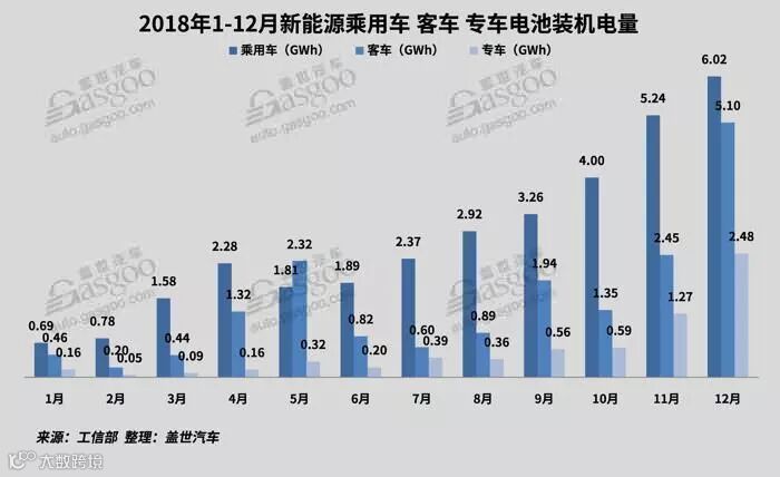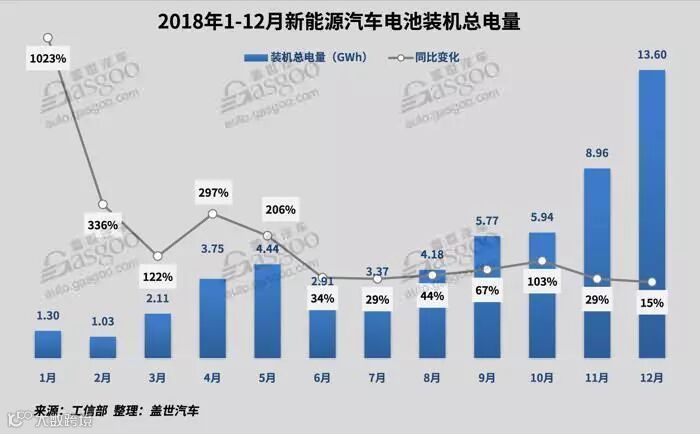 2018年12月,动力电池总装机量13.60 GWh,创单月历史新高,同比增长15.4%,环比增长51.7%。