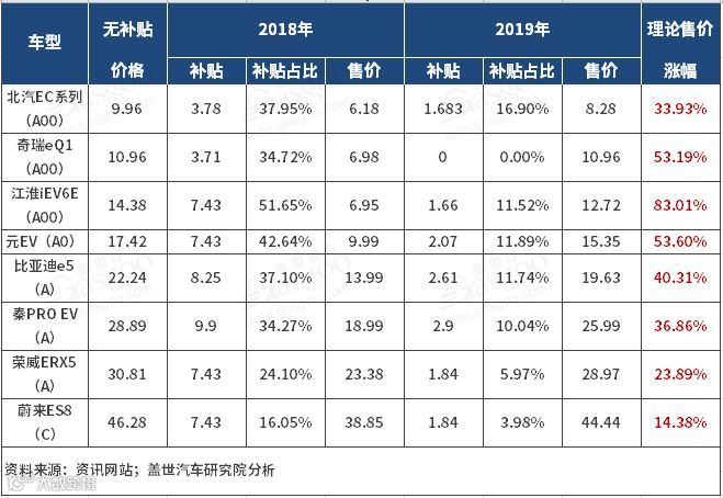 按照新补贴政策的理论售价来看,A00车型的售价将上探到10万左右的价格区间,A0车型价格上探到15万左右价格区间,而A级车型价格则在20万左右,相比目前的终端价格有了不同幅度上涨。