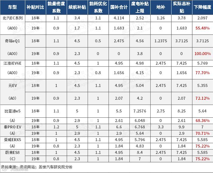 按照该版本补贴标准,19年单车补贴将金额大幅下滑,其中最高下滑100%,平均下滑70%以上。