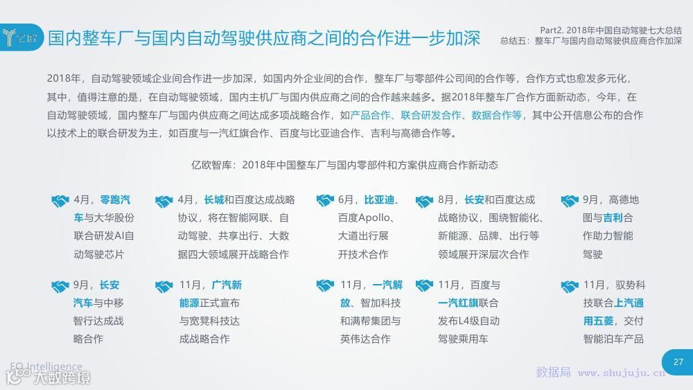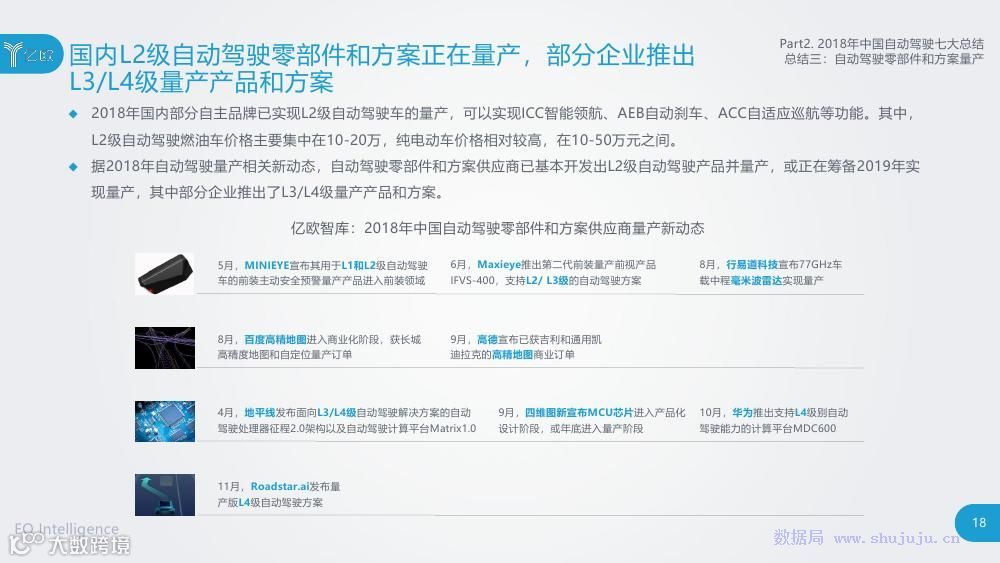 《报告》从政府、自动驾驶企业和投资方三大主体出发,整理归纳其2018年的新闻事件及新动态,分析总结了2018年-2020年我国自动驾驶领域的七大发展方向和趋势,并提出了现阶段国内自动驾驶企业亟待解决的几项问题和挑战。